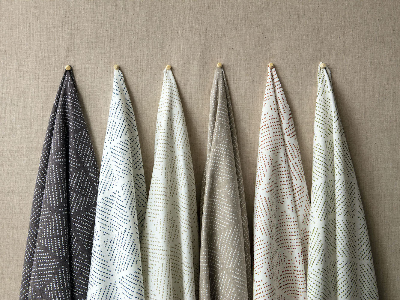 Fleet Stripe began as an experiment in small, varied brush strokes that then progressed into a medley of structured bands and watery dots and dashes that together form soft, relaxed bands of stripes.