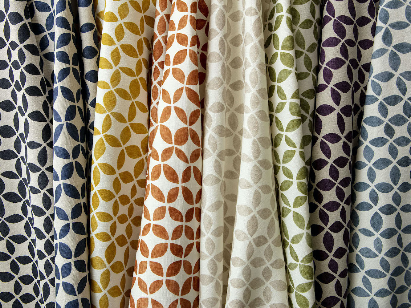 A delicate flower springs to three-dimensional life in Posie. Embroidered on a linen ground, thick yarns add depth and interest to the simple, repeating floral motif.