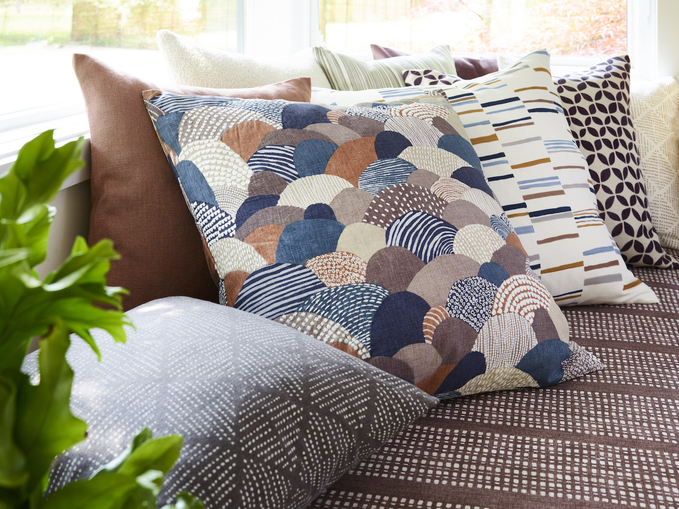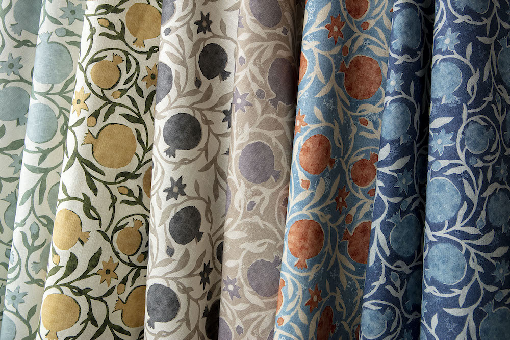 Pomegranate offers a lush, updated take on a historic pattern. Taking its cue from a traditional hand-block print, the botanical theme—with its winding vines, florals, and, of course, pomegranates—is made modern with a rich and unique color palette.