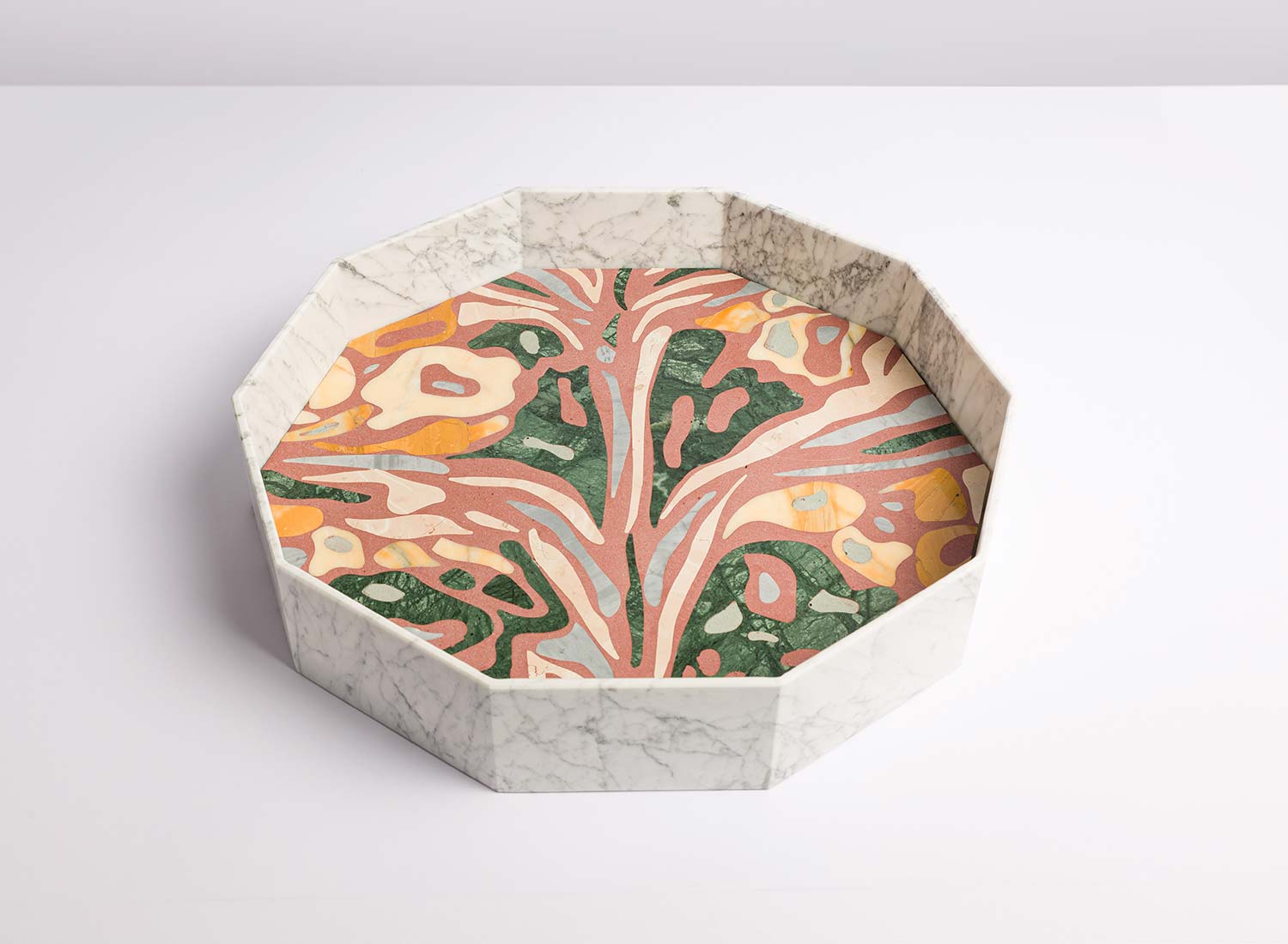 Strongly inspired by the ancient process known as paper marbling, today reinterpreted in a completely different material: a surface of great manufacturing complexity that hybridizes colored concrete and marble.