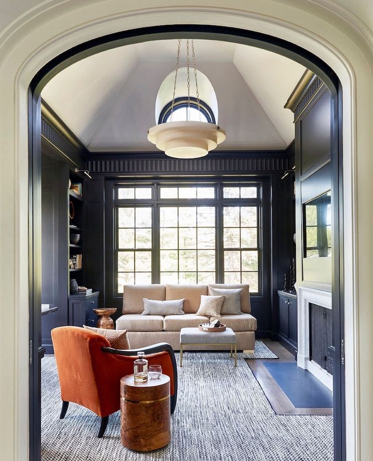 Fiber-Seal can keep upholstery fresh, whether calm or colorful, as in this den by Toledo Geller.