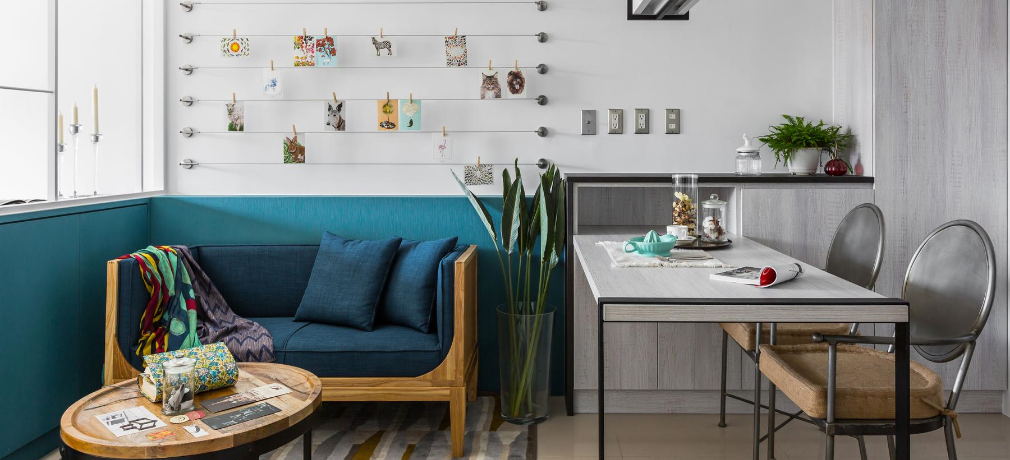 When a window becomes a focal point, even the tiniest area can become a dynamic living space, as proven by this home in Taiwan. With white walls and strategic use of color, Musen Design has created an open feel that belies the 338-square-foot home.