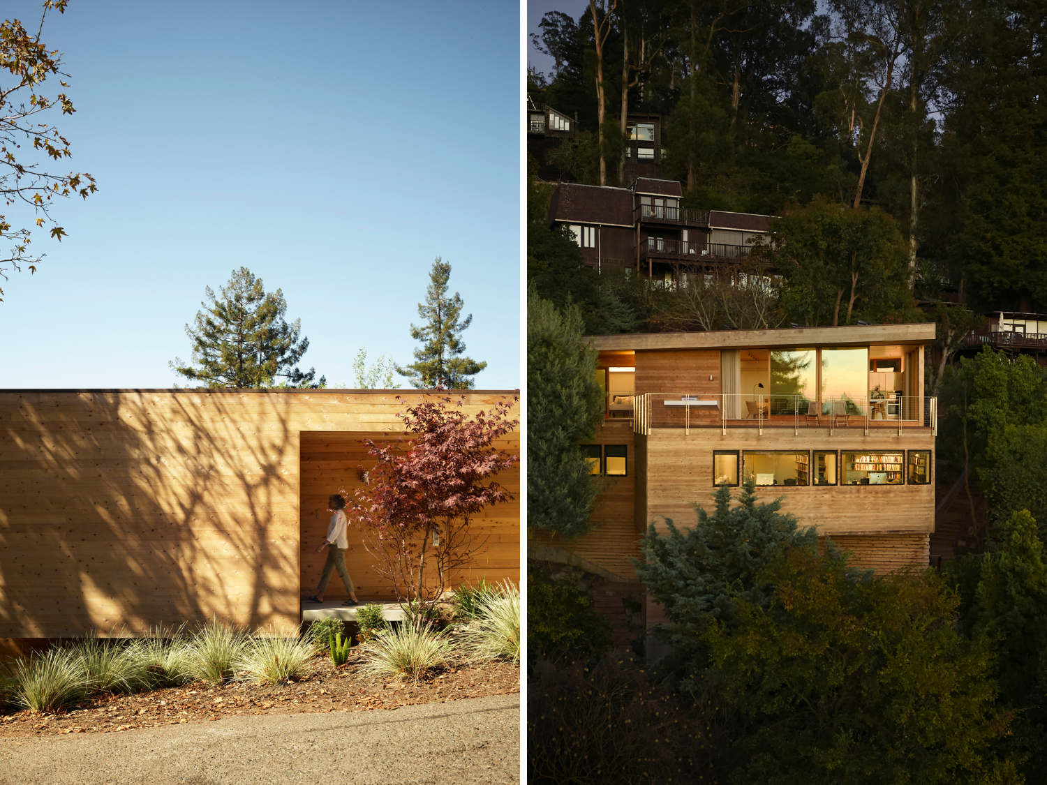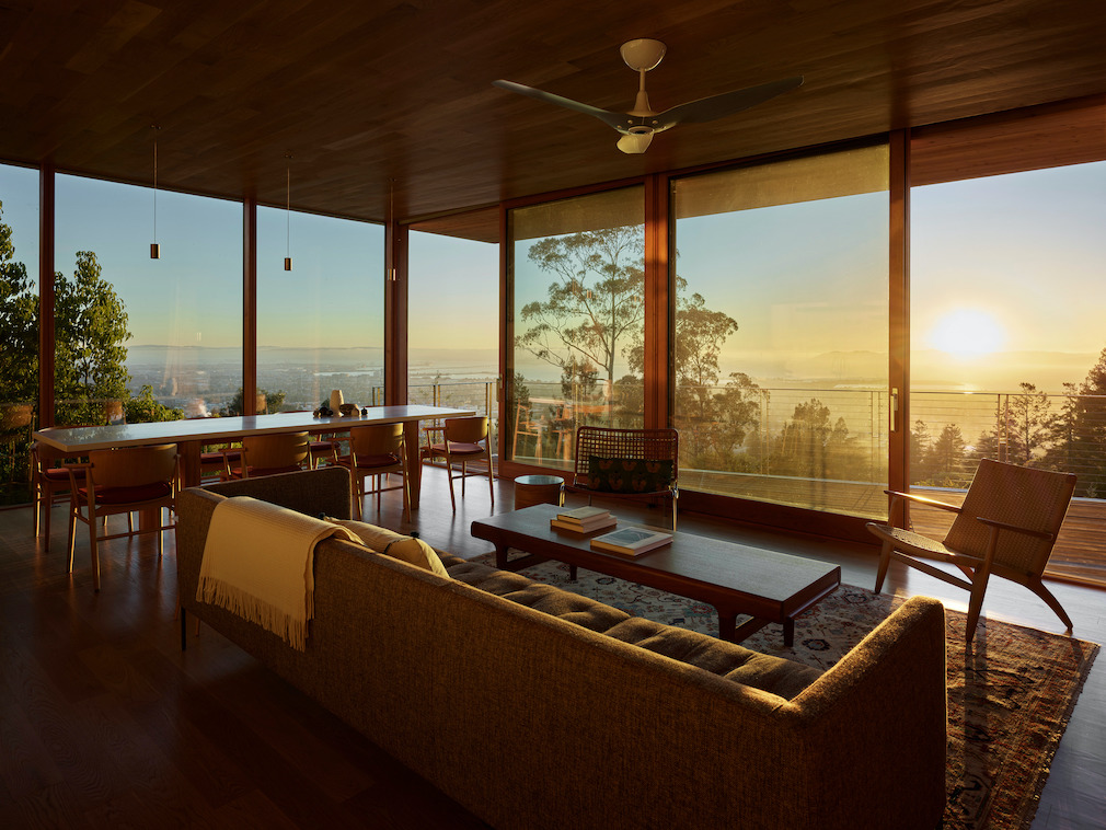 Following the firm’s design philosophy of finding design solutions between landscape, climate, and client needs, Rangr Studio’s second house in the Berkeley Hills, Buena Vista House, followed the same design strategies as its first: to take advantage of the sunny yet chilly microclimate to maximize solar heat gain, and to provide direct cross-ventilation to allow the dry air to cool the trapped heat — creating living spaces that are open to the outside air throughout the year.
