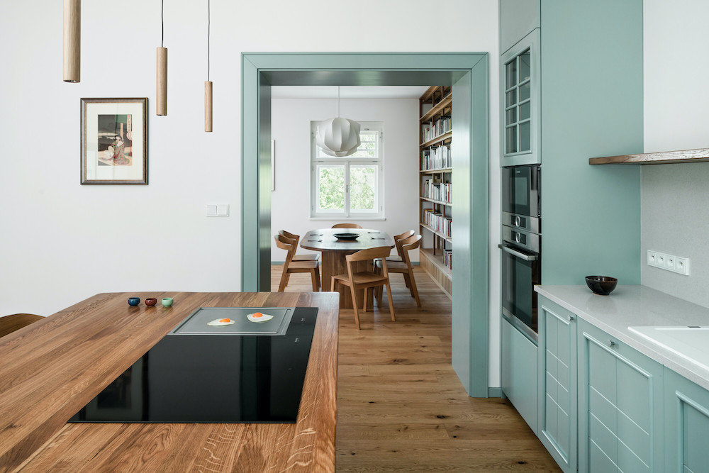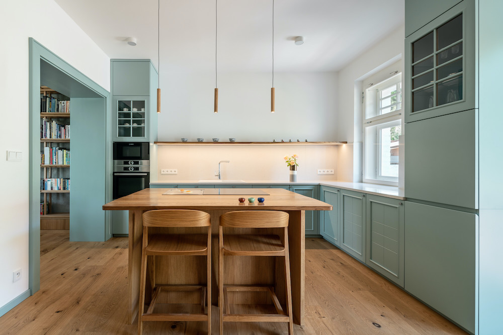 In addition to a complete technical modernization, the property has undergone a change of layout. It has been given a direct connection between the kitchen and the garden and has also been extended in the original spirit with two more rooms and a bathroom. In addition to empathizing with the intent of the original architecture, the interior subtly incorporates the clients’ individual life experiences and inspiration from Japan, on the one hand, and the world of the UK on the other. As a tribute to the original builders, we have added one special door to a child’s fantasy world where any adult can only kneel in humility.
