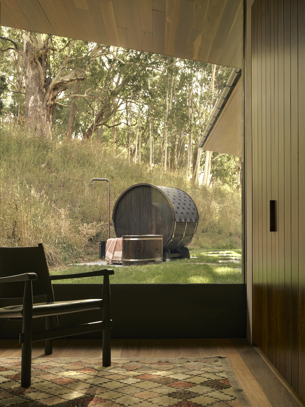 Eventually, Mills’ father purchased land in the valley and built a small fishing hut, where holidays were shared with family, friends and nature. Those formative experiences instilled in the future architect and founder of RMA a lasting appreciation for the landscape and a desire to honor it. “We designed and built Howqua River Lodge as a place to gather and enjoy life’s most precious moments,” Mills describes of the property and the home itself. “It’s designed for restoration and reflection. Mornings are quiet and unhurried. Days are filled with quality time sitting by the fire, walking in the wild and exploring the outdoors. It offers a welcome pause from the pace of everyday life – somewhere to slow down and truly connect with the land and those around you.”
