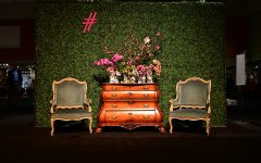 Two armless, 70’s orange-leather chairs with chrome bases face one another in the foyer, exemplifying how vintage pieces can enliven a space, and how a pop of color can add an element of aesthetic drama and intrigue to a space. The core of her design work is to highlight the classical while integrating modern elements. Rains prefers antiques to new pieces for their craftsmanship, patina and the stories that they carry. “These pieces offer a lot of opportunity for play,” she concludes.