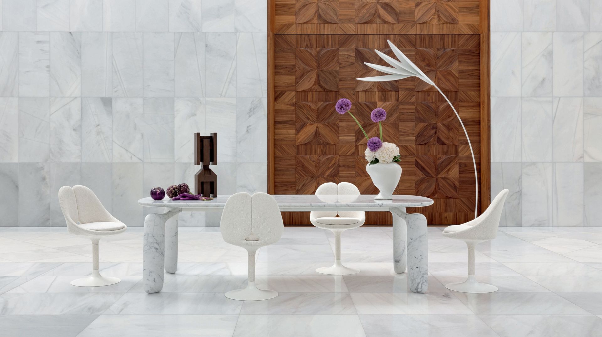 Continuing its pursuit of artisanal excellence in manufacturing techniques, Roche Bobois has revisited two of its iconic dining tables.