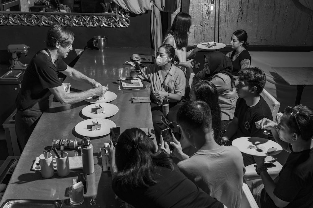 Here’s a taste: Lak Lak is pandan suji riff on the Balinese street snack, topped with whipped coconut yoghurt and trout roe. Inspired by a market stop in Kungkung circa 2017, and a little Cher – because do you blinis in life after love? Raspberry HK features local raspberries with black sesame ice cream, sesame nougatine, and black tea milk sauce. A tribute to a black sesame moment in Hong Kong – now reimagined in Ubud. Fries // Shake is Klungkung-style sweet potato fries from Chef Dewi’s garden, served with cashew aioli and kluwak mole. Invoking childhood curiosity and calling into question all you thought you knew.