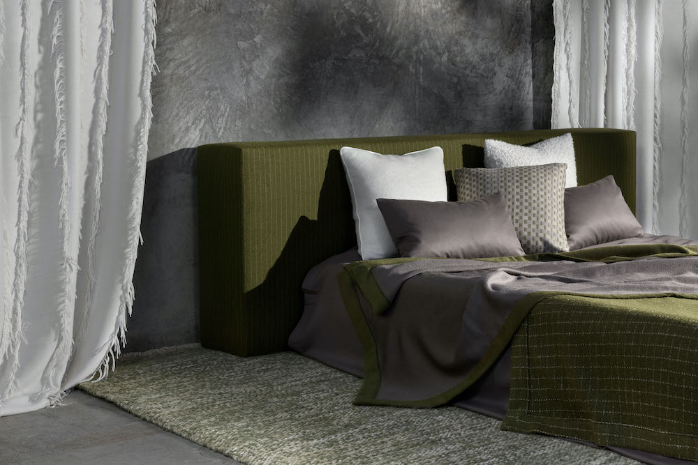 FF: Our textiles are very versatile, and we aim to cater to flexibility of style. Nevertheless, we saw we needed to expand our library of photography to more contemporary applications and designed the photo shoot to reflect this. We drew inspiration from many sources, including shadows from Fritz Lang’s Metropolis, the work of architect Luis Barragán, the sets of Squid Games, and Giorgio de Chirico’s oneiric paintings.