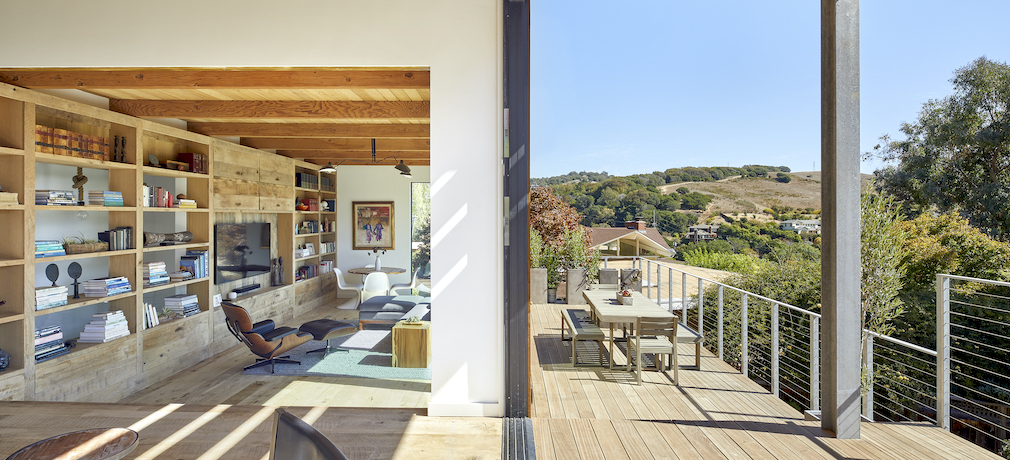 San Francisco-based Spiegel Aihara Workshop (SAW) has completed the transformative architectural and landscape design of a 1962 home in Mill Valley for a couple and their two young children. The project, known as The Middle Half, dramatically reconfigures the home’s core to create an open, light-flooded interior and direct connection to the landscape. Raw, textured materials like galvanized steel, rough-sawn cedar siding, and cast-in-place concrete define the project and accentuate its unexpected, layered geometries.