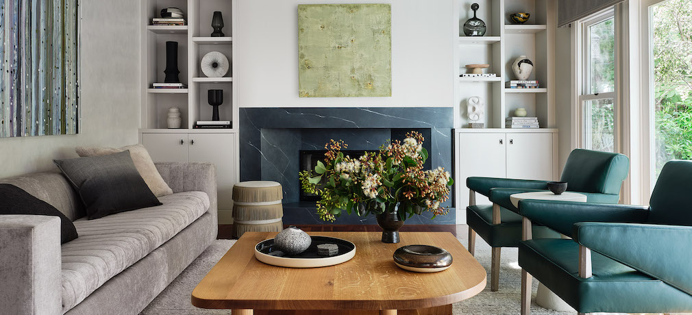Peruri took advantage of the creative freedom they afforded her, repainting the exterior, switching the location of the formal living and dining rooms to create a better flow and touching nearly every surface throughout the interior. The client’s elegant yet understated sense of fashion – and the verdant setting – inspired the restrained palette of neutrals Peruri selected for the interior. “It’s very lush and green outside, and I wanted to sort of pull those colors in,” she shares.