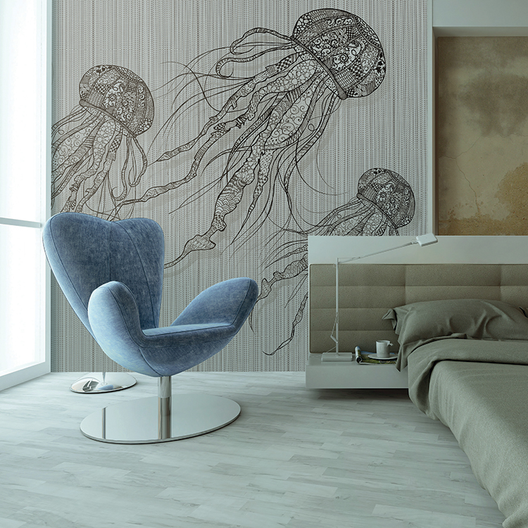 Integrate Collection | SKINWALL WHITE STITCH | A creative, customizable solution to meet the needs of a coordinated floor-to-wall concept by shaping a light, airy whole in which colors and shapes are in perfect harmony. Every design can be printed on different supports: smooth non-woven, embossed coated vinyl, “Woven Vinyl” extremely resistant or textile mural wallcovering non-woven fabric backed.