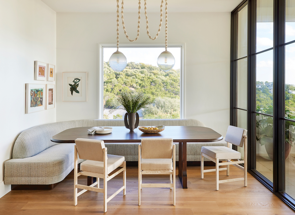 Such was the case for a Texas couple when they spotted a less- than-stellar Spanish contemporary home on a great site in West Lake Hills, Texas. Six miles outside of downtown Austin and offering a view of the city skyline across hilly terrain, the property was the right size for a family of four. But its windows weren’t properly scaled to encompass the vista, and any number of details — including heavy-handed wrought-iron light fixtures and cheap ceiling fans in nearly every room — had to go. Turning to Studio Gild, a design firm with offices in Chicago and Los Angeles, the homeowners transformed what others may have seen as a pig in a poke into a place of captivating simplicity.