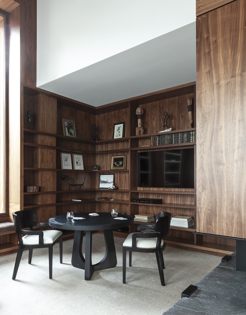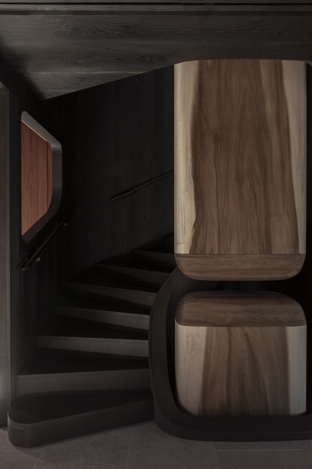 PM: For the clients, long-time, loyal patrons of the House, it was essential to design the entire 757 square meters [nearly 2,500 square feet] of this luxurious chalet, to conceive a signature staircase that defines the project’s identity, and to fully furnish all four levels.
