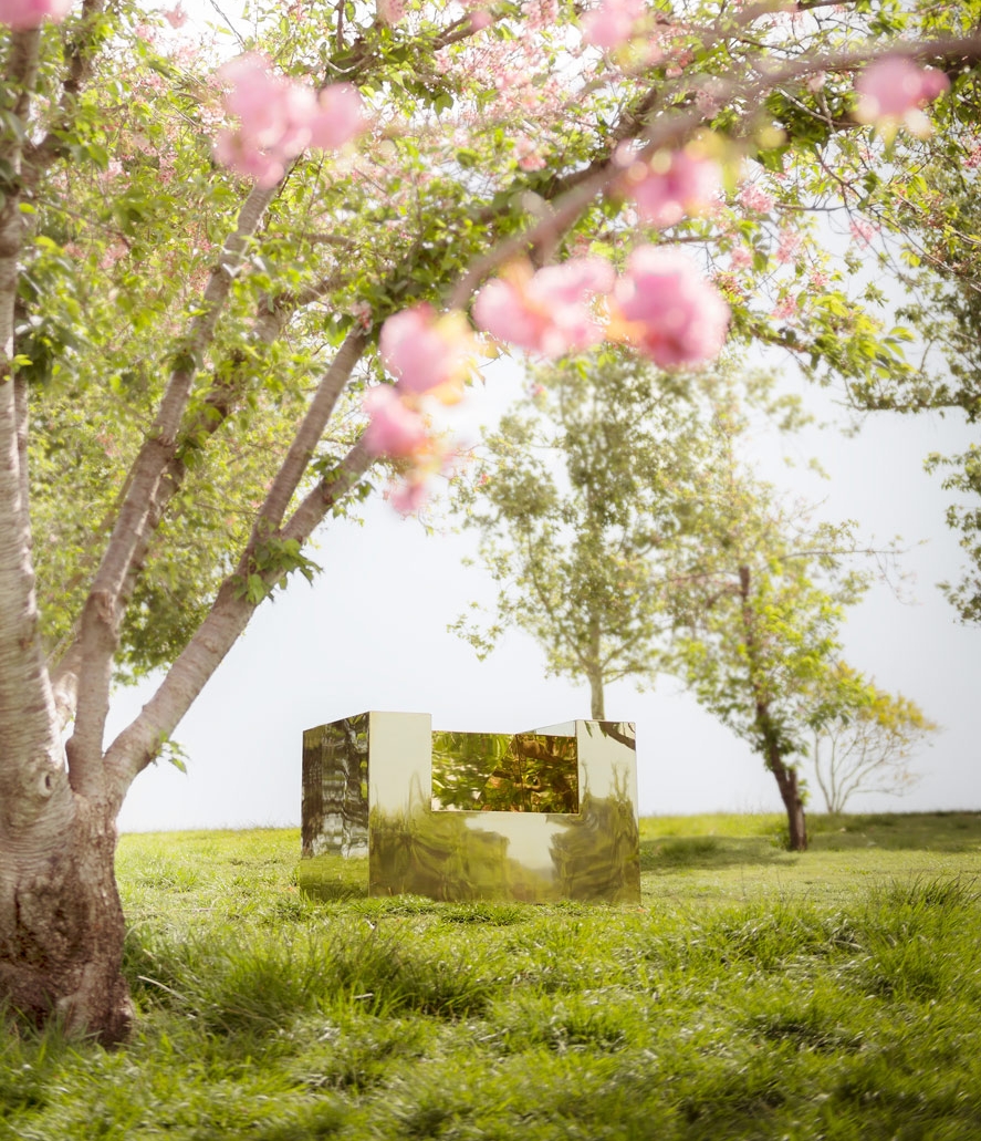 The Subtracted Cube from Videre Licet is a study in blending minimalism with extravagant luxury. The name derives from one of the basic elements of digital modeling, using one primitive form to subtract from another in order to create a third. Executed in brass, the end result is a minimal yet surreally glamorous sculptural form.