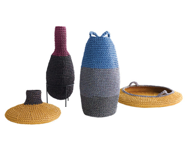 iota HANDMADE CROCHETED VESSELS | Left to right: Low Pot, High Pot on Stand, Large…