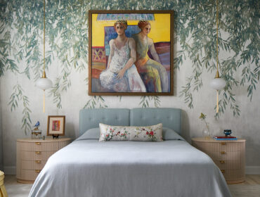 Wallpaper and drapery: Romo; Bed: Duxiana; Bespoke blown glass pendant: The Drawing Room ATL; Nightstands:…