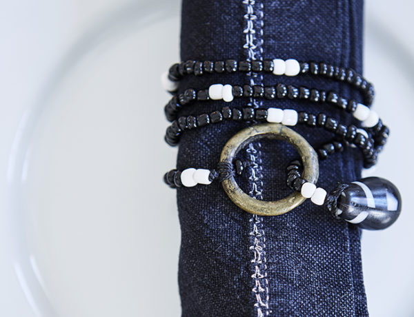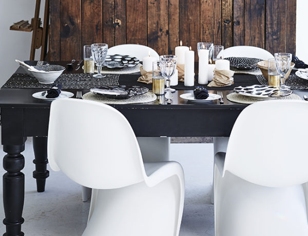 A small Karoo thorn tree has been painted white to striking effect. The black, white…
