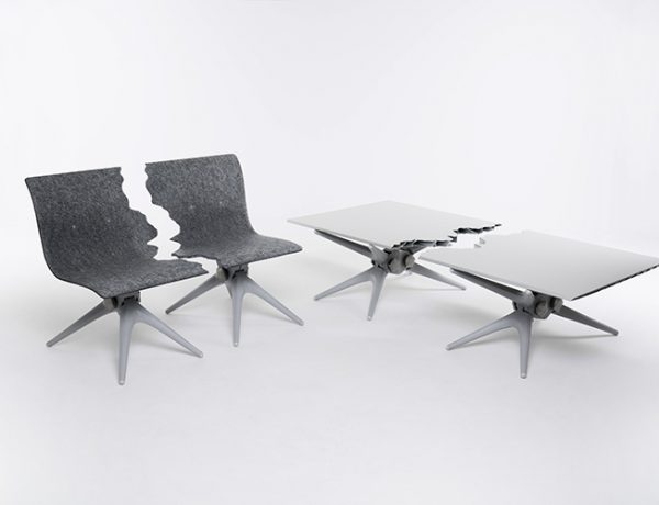 FRACTURED BENCH + TABLE By Pentatonic in collaboration with Snarkitecture | This bench-and-table combo uses…