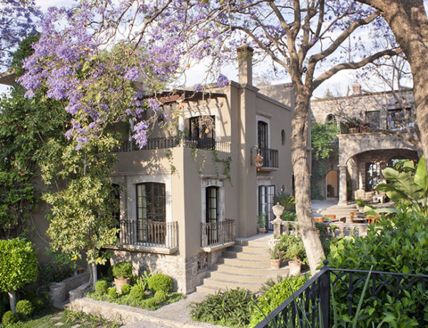 The property’s lush gardens and jacaranda trees provide bold color that complements the interior palette.…