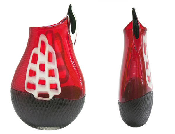 Alberto Dona 1980s Modern Red and Black Murano Glass Vase with White Murrine | Work…