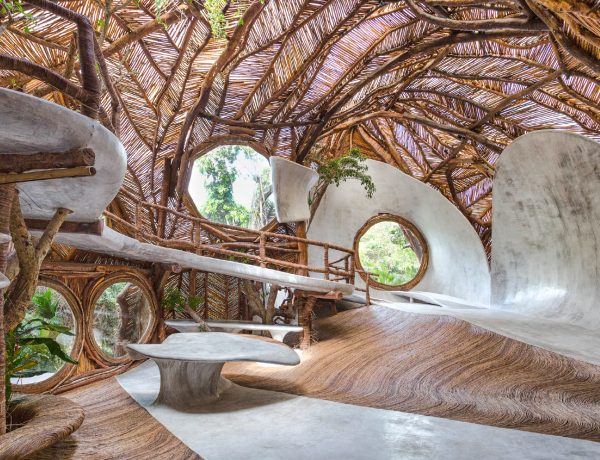 Round windows set into the massive, geometrically patterned dome illuminate the gallery, serving as portals…