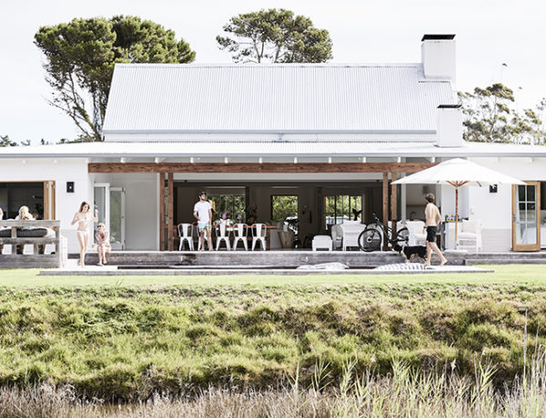 This streamlined, contemporary, farmhouse-style holiday home is set on the banks of the tranquil Piesang…