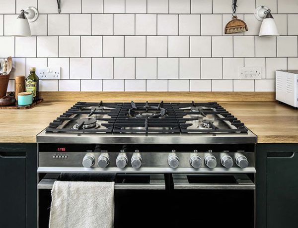 With its bold color palette and industrial accents, this green galley kitchen radiates style. The…