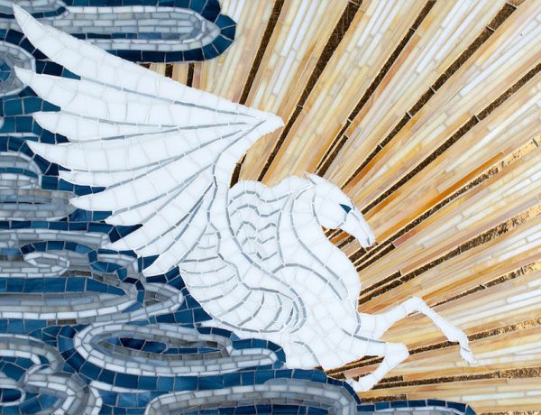 Jacquelyn Bizzotto, Designer, “Orchid”. 9″ x 13″. Materials: Jewel Glass with an Obsidian Sea Glass™…