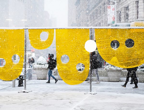 Studio Cadena’s site-specific installation Happy, the winner of the fifth annual Flatiron Public Plaza Design…