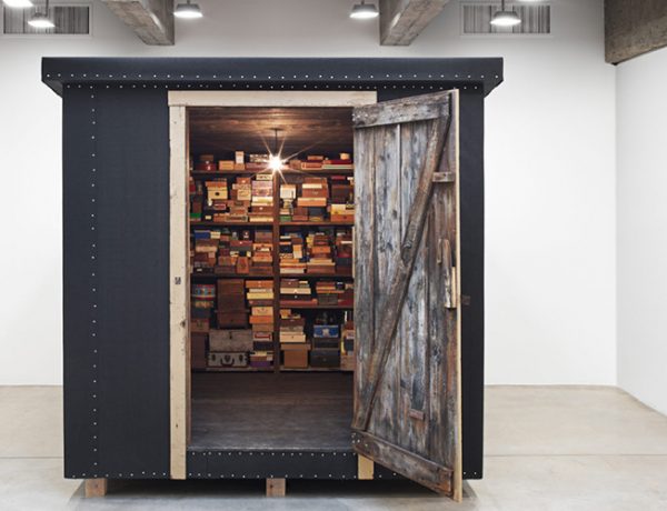 Mark Dion, Memory Box, 2016. Wood, steel, shelving, various objects, 114 x 113 x 125…