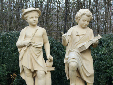 A rare pair of stoneware figures representing Commerce and Knowledge, possibly produced by Doulton &…