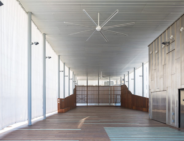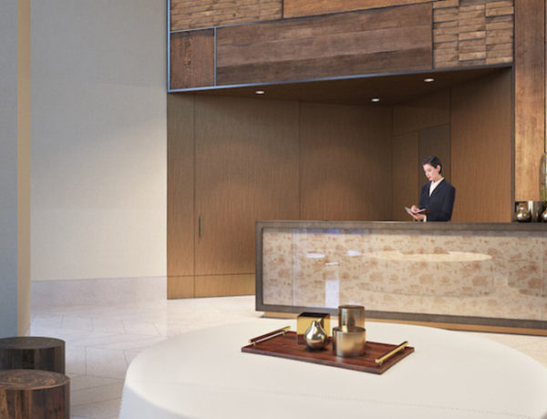 City Tower’s lobby offers a feature wall crafted with soft wood joists reclaimed from a…