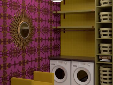 TUMBLE IN TECHNICOLOR Where laundry meets lounge and every cycle spins in style: This utility…