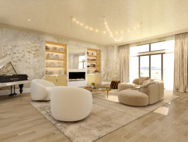 BUTTERFLY EFFECT This serene and whimsical great room blends organic softness with sculptural drama. A…
