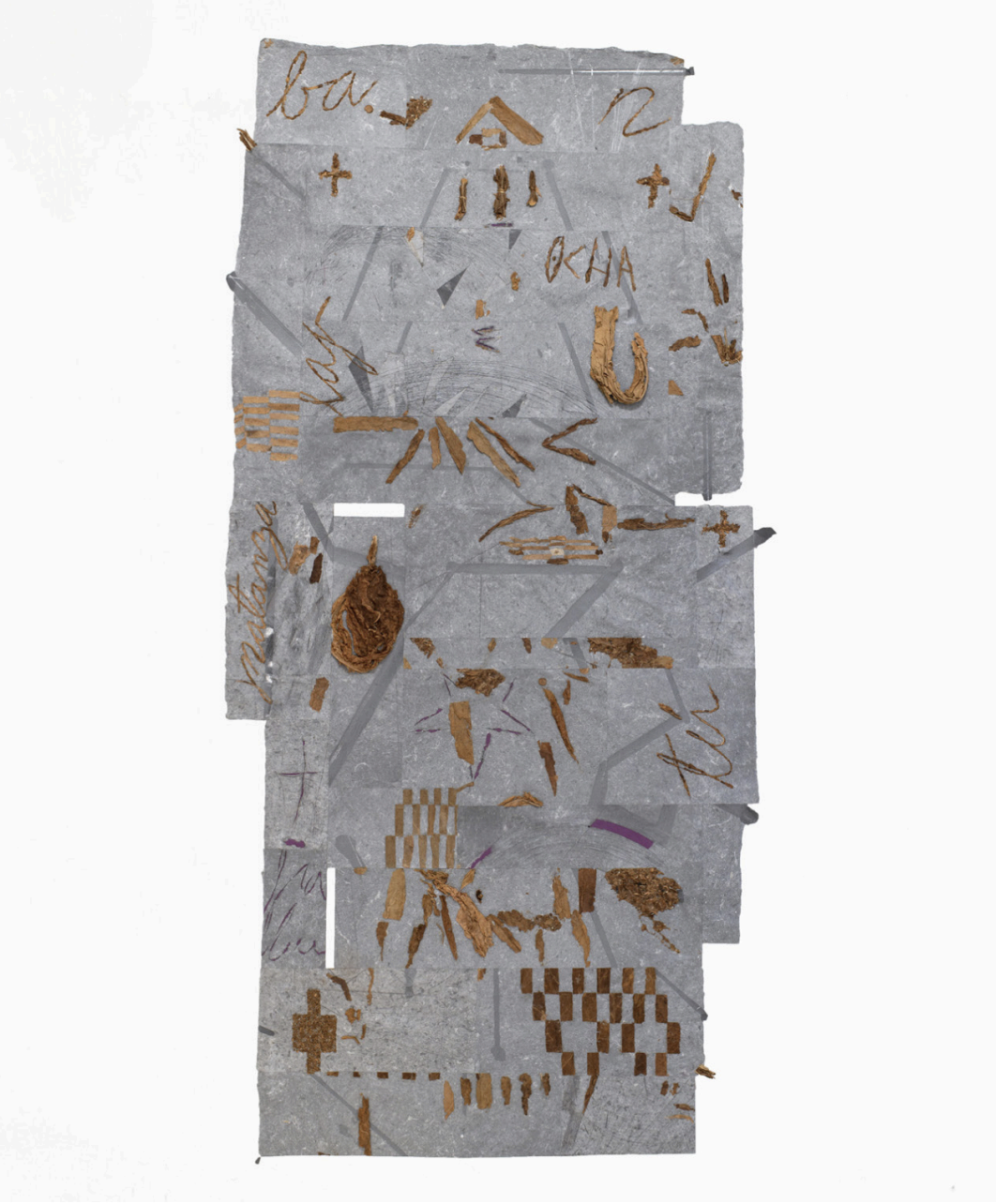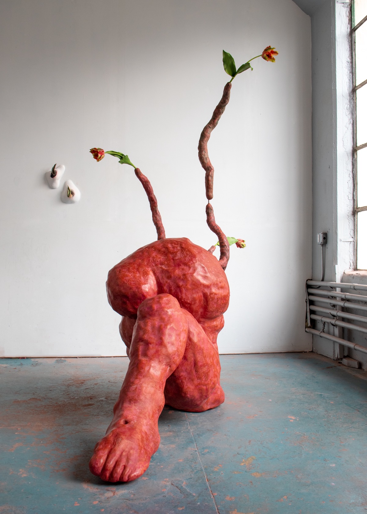 Connections between nature and the body are examined by multidisciplinary artist Jonathan Sanchez Noa, as he interrogates how histories of colonial extraction have impacted notions of race, identity, and climate. Incorporating Cuban tobacco leaf in handmade paper, Noa creates large abstract landscapes, exemplified by Untitled (OLÙFINA mi carne, Isleños; pictured above), that reconstruct narratives of displacement and their cultural and religious significance. Sagarika Sundaram also uses natural materials such as fibers and dyes in her sculptures and installations that explore the interconnectedness of humanity and the environment with a particular focus on themes of migration, memory, and notions of home and domesticity. Subverting processes of mass production, Daniel Giordano’s provocative sculptures serve as eclectic assemblages—comprising industrial artifacts, foodstuffs such as prosciutto and Italian nougat, as well as all manner of organic material, from ticks to bald eagle excrement—that reflect the artist’s family, his Italian-American heritage, and the postindustrial realities of Newburgh, New York, his hometown.