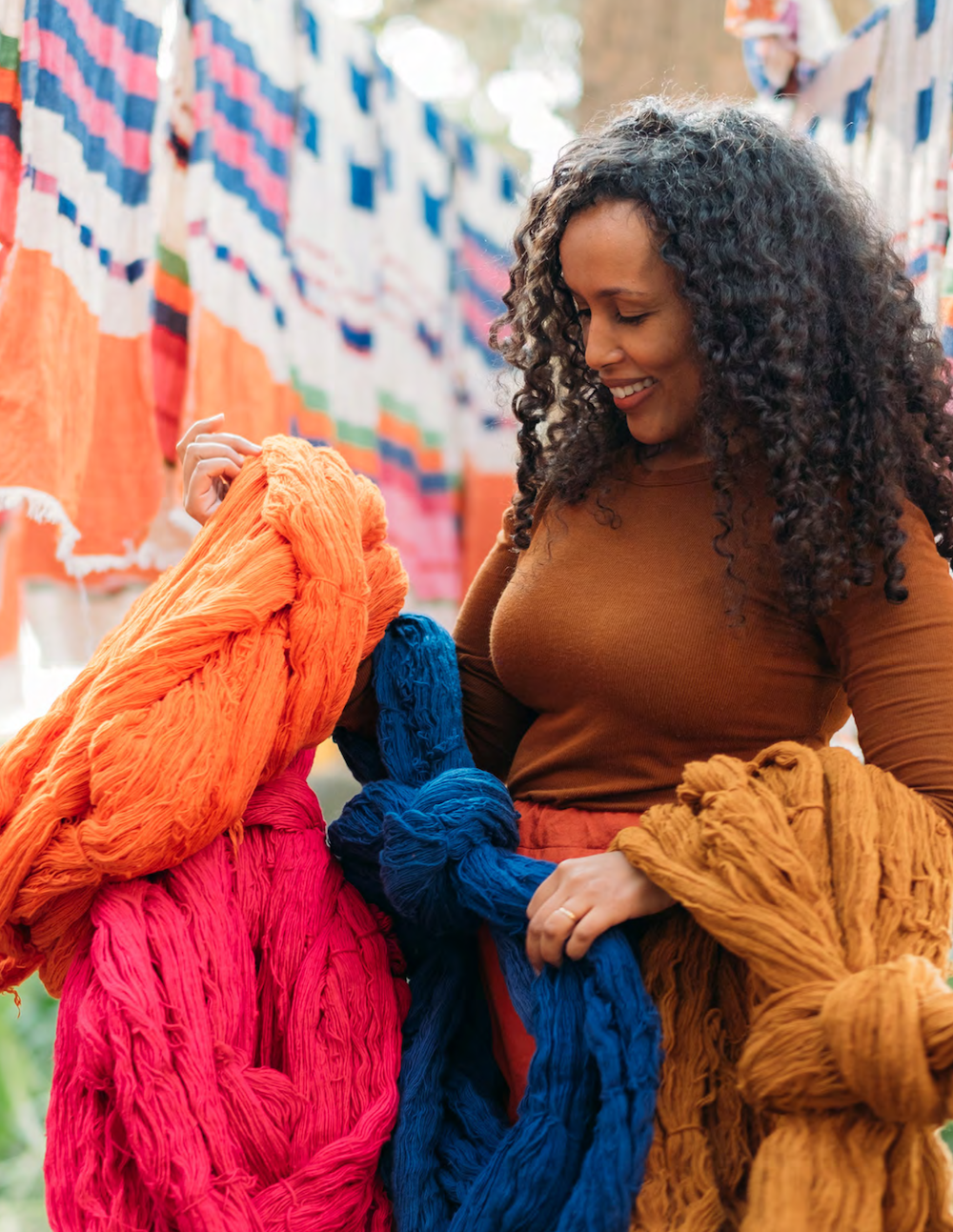 “My intention with each piece was to honor and pay homage to the original artworks so that the conversation could be as much about their lineage and craftsmanship as it is about this new collection,” Getachew concludes. “I’m especially proud to create this collection with my longtime partners in Ethiopia, Sabahar, who have been with Bolé Road since the very beginning. This spring, as we celebrate our 10-year anniversary, it feels especially meaningful to highlight the enduring skill and artistry of African textile traditions. The pieces Sabahar’s artisans hand-dyed, hand-loomed, and hand-stitched for this collection are a living testament to that legacy.”