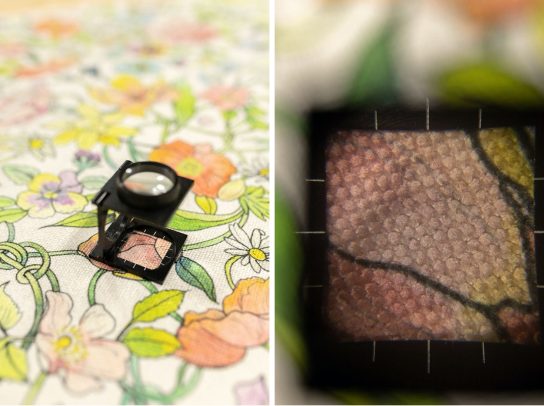 A textile industry staple, we always have a Pick Glass on hand to analyze textile constructions no matter the setting. For us, quality and consistency is key so a pick glass is a must-have tool. It also aids in our textile development process because we spec out everything in-house.