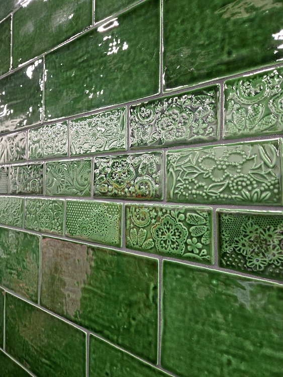 Though vivid color was less in vogue, we were still definitely seeing green. In some sense, this follows a longer-term trend of the color being on the rise since 2015. But it was also mixed with the spirit of other trends — for example, in terms of color: less fluorescent and more forest floor. And some of our favorite examples — like these Antic Feelings Lava and Viva Antic tiles in Verde by Merola — also had that trending rough-hewn quality about them, as though they bore the touch of a craftperson’s hands.