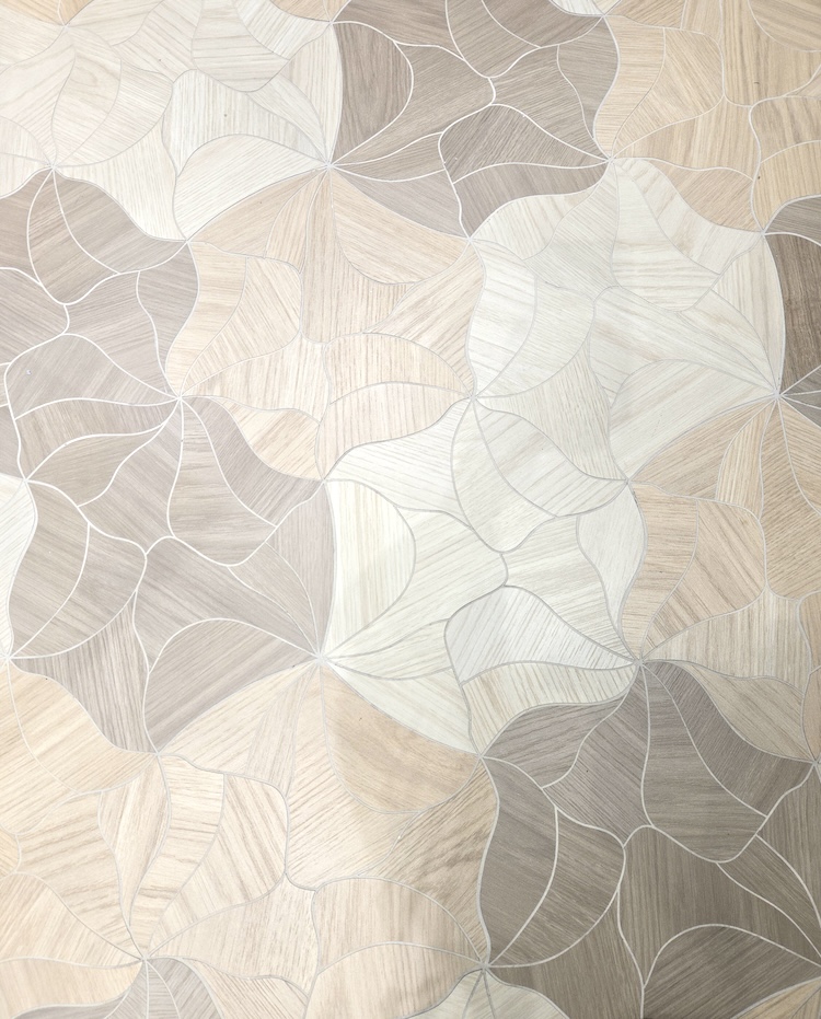 Organic minimalism abounded, which broadly translated to expanses of creamy beige tile — often inspired by the materials of mother nature herself — such as marble and wood. And while these are often intended to serve as the easy backgrounds of serene spa baths and cheerful country kitchens, there were more decorative interpretations, as well. Among them was this Milestone Calissa Plank Blossom with its floral patterning — shown here in a mix of Maple, Golden and Urban Walnut colorways.