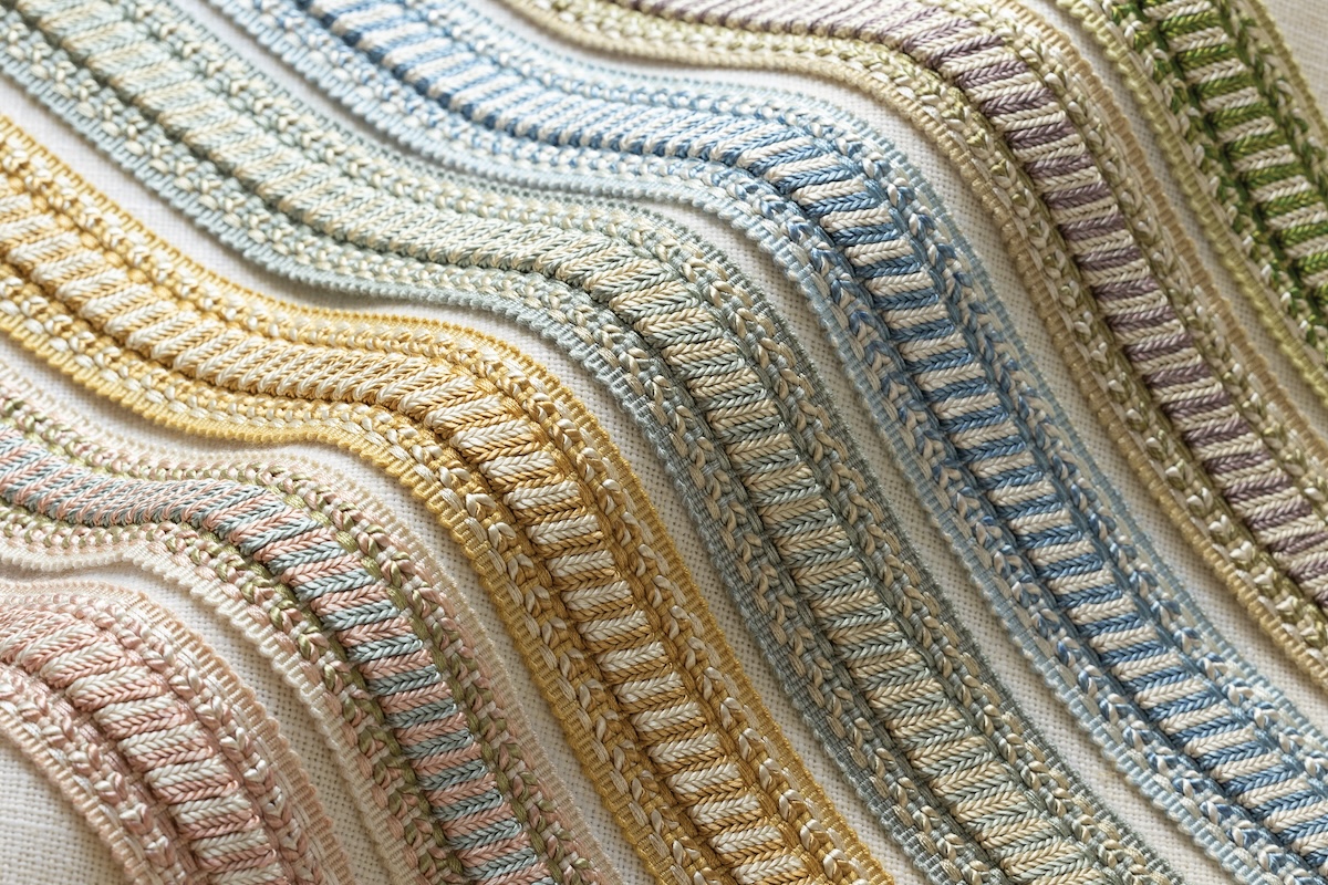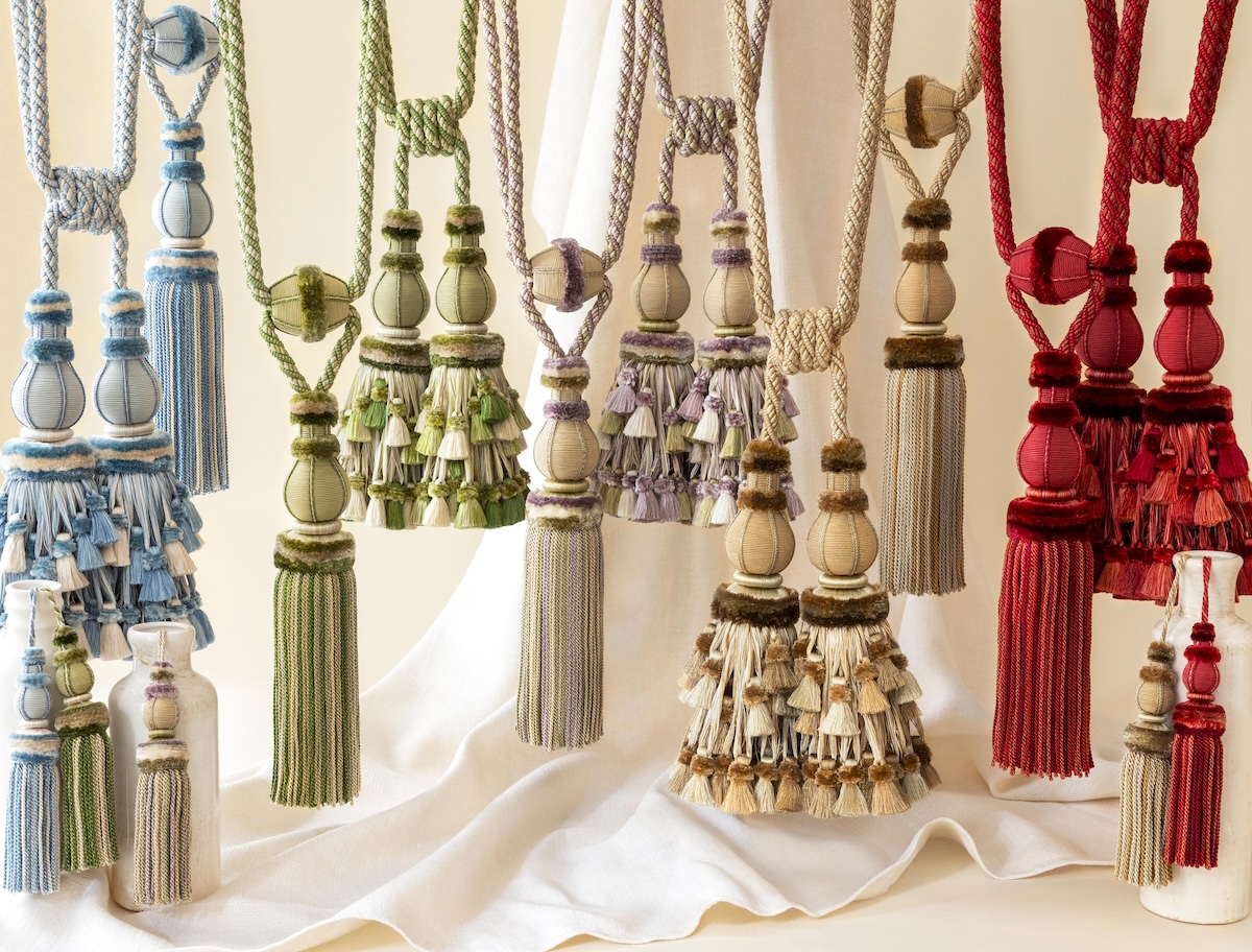 Timothy Corrigan: I started to work on the new collection in the summer of 2021 and presented several different concepts to the creative team at Samuel & Sons in October of that year. There were originally 20 different pieces in the collection that we trialed and then narrowed it down to the winning 13 items. From a color perspective, we started with 16 different color combinations and finally came down to the 10 that best fit the way that colors are moving today. We intentionally added different colors in the same piece so that any individual piece could be used with a broad number of different color schemes. The creation of the collection involved a lot of going back and forth with different materials (silk, polyester, etc.) because we were trying to achieve the maximum sense of luxury and quality with a reasonable price point.