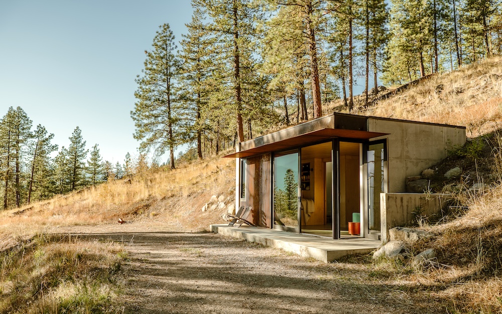 A 300-square-foot cabin tucked into a rocky hillside was dubbed Tinyleaf for both its dimensions and treelined surroundings. Sited in north-central Washington’s scenic Methow Valley, the architects considered majestic views and a strong relationship to the topography in its efficient design.