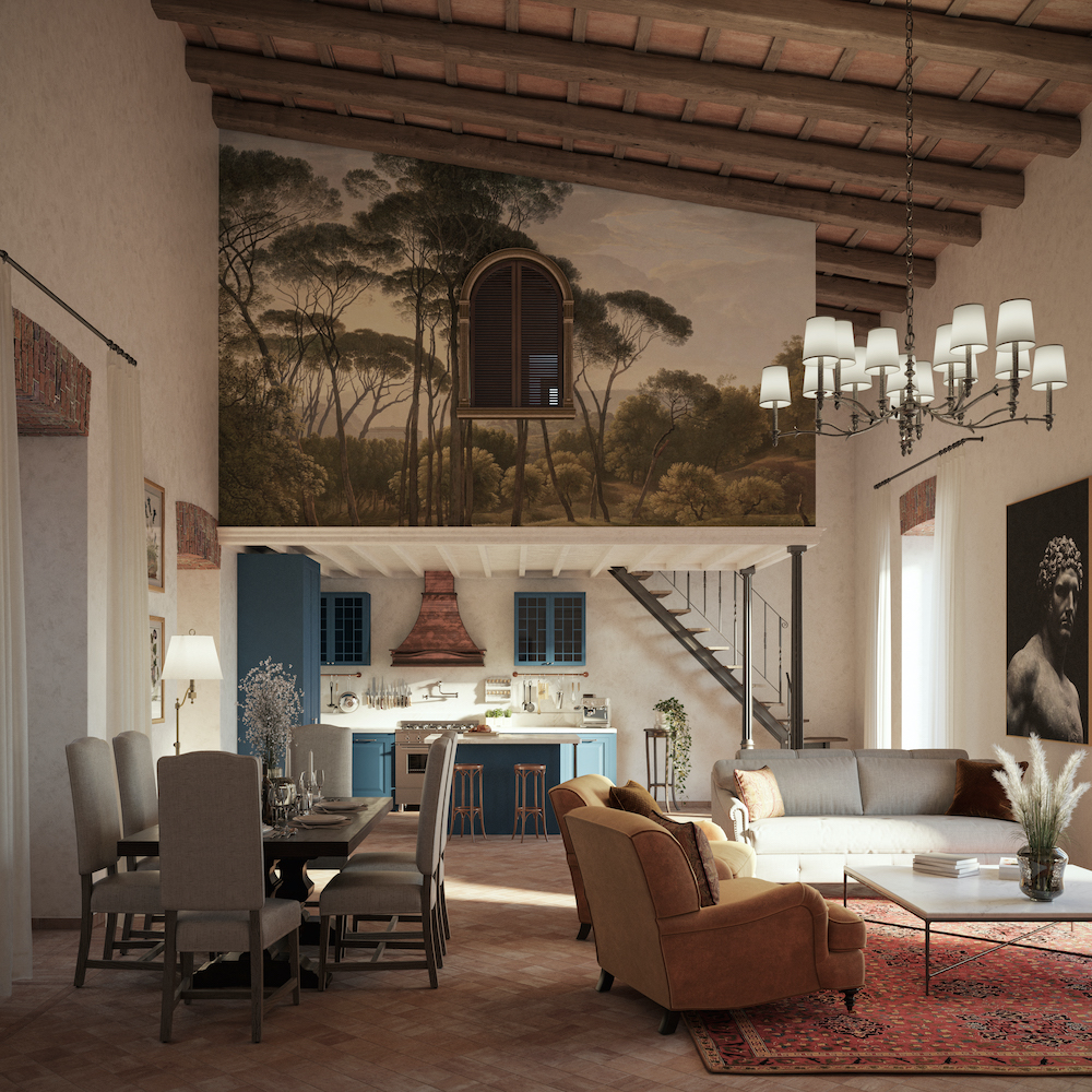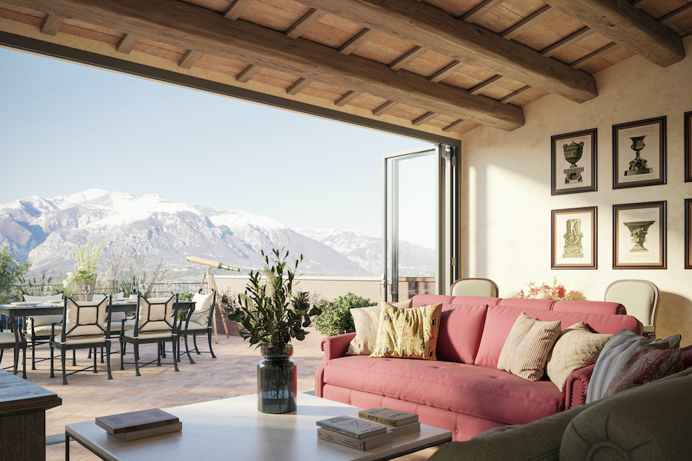 Each residence has a unique footprint that makes the most of the palace’s features such as soaring ceilings, terraces and oversized windows with views of the Apennine mountains. The palazzo will also showcase 18th-century faux blockwork techniques, hand-painted borders and friezes as well as murals painted by Spencer Power (Bellhouse’s husband) and his team.