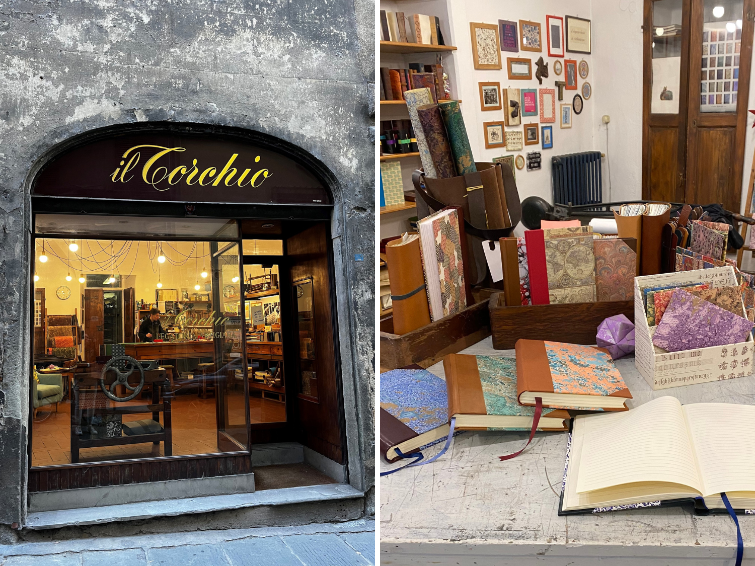 Il Torchio in Florence showcases traditional Italian crafts through its marbled paper and handmade leather notebooks.