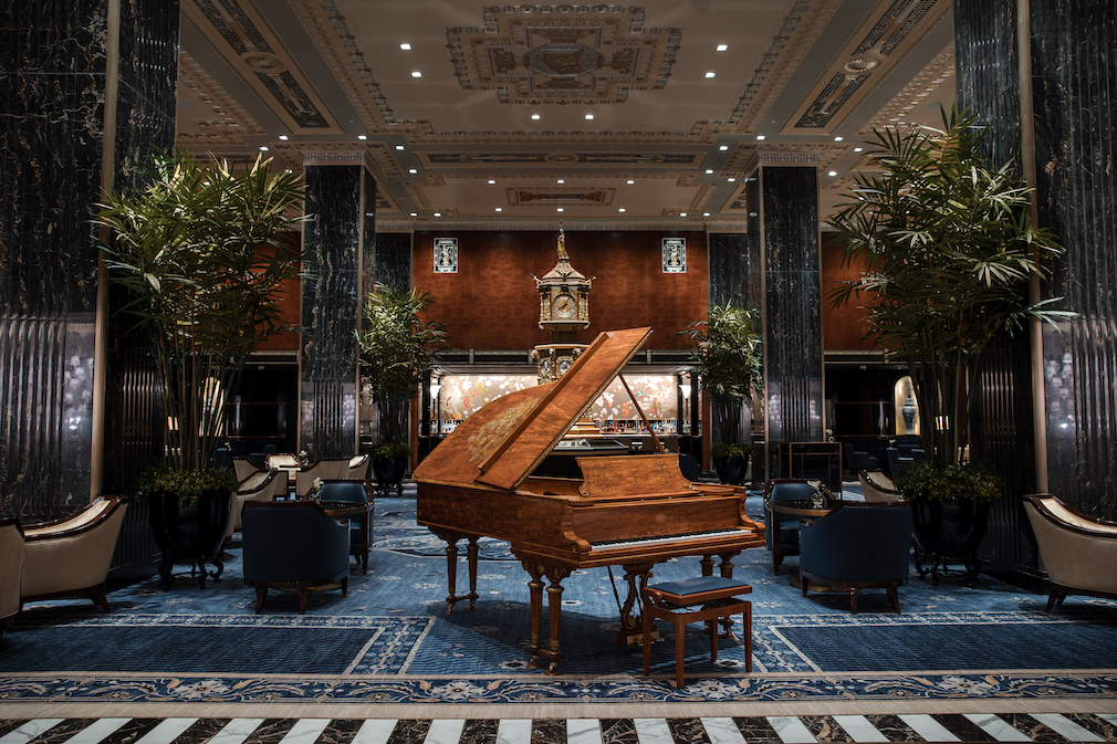 Peacock Alley remains one of the hotel’s most recognizable spaces. At its center stands the gilt Waldorf Astoria Clock, originally created for the 1893 Chicago World’s Fair—so iconic that “Meet me at the clock” was once a common phrase among New Yorkers. Nearby sits a Steinway piano that once belonged to Cole Porter.