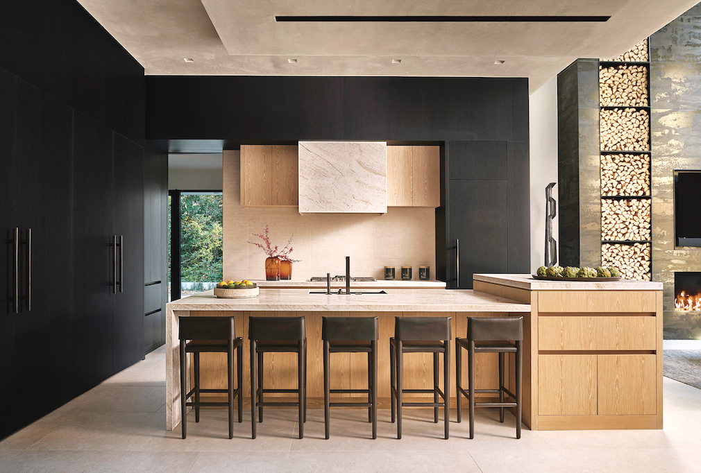 And that is where the living begins for this active, intergenerational family that includes three boys and a large Bernedoodle. “The house unfolds and surprises as you come through it,” notes Tretsch. “Everything sort of peels back.”