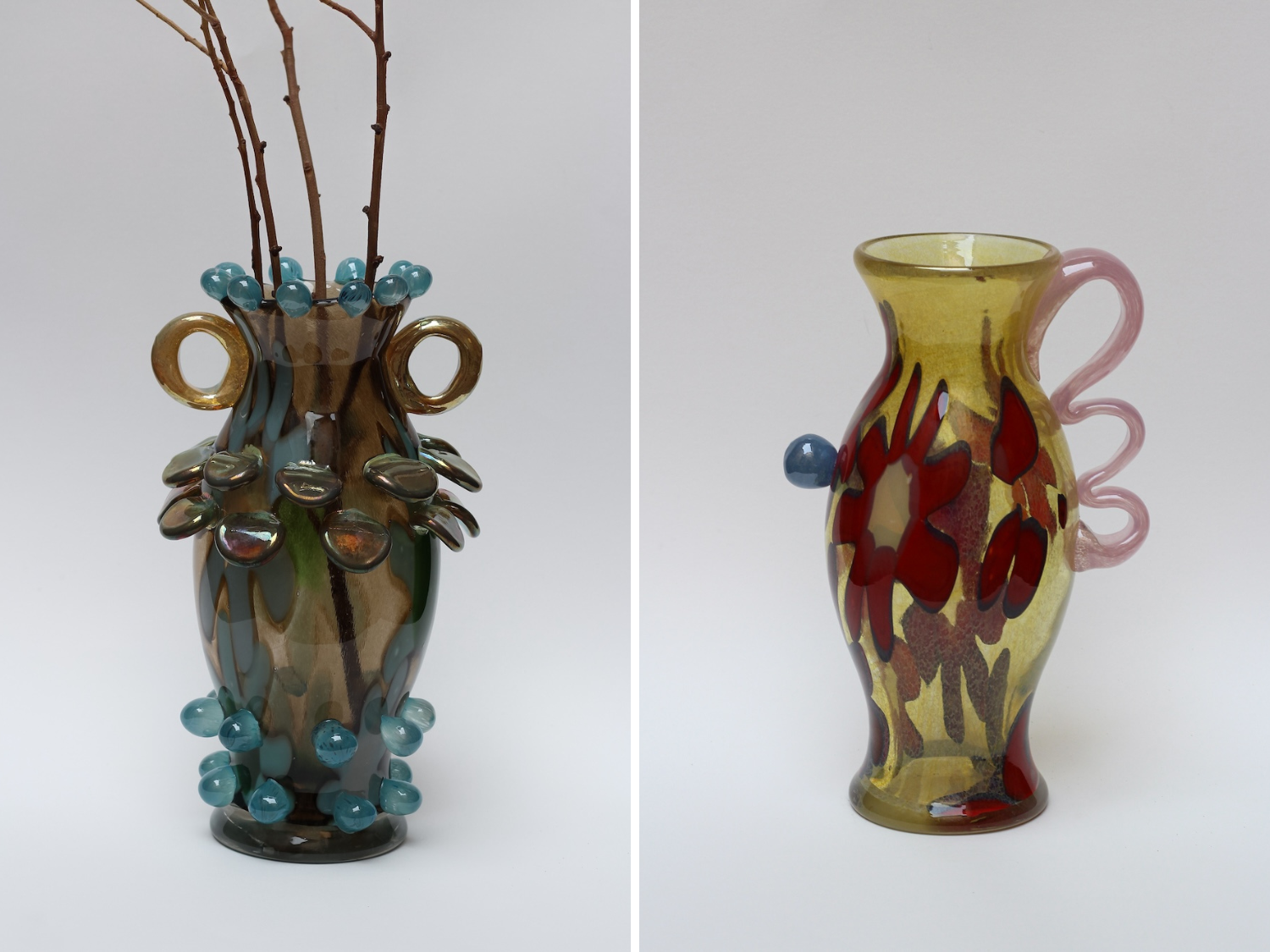 Classic shapes meet modern adornments in this new collection of handmade glass vases by artist Roksolana Khudoba.