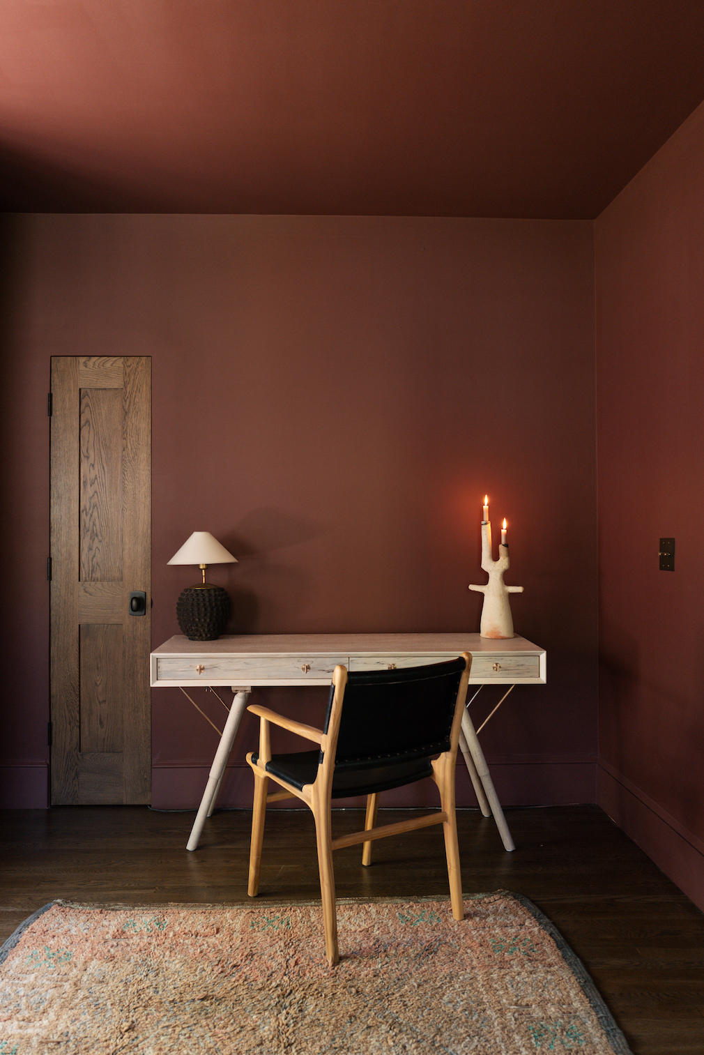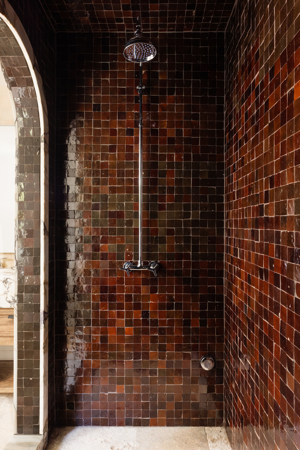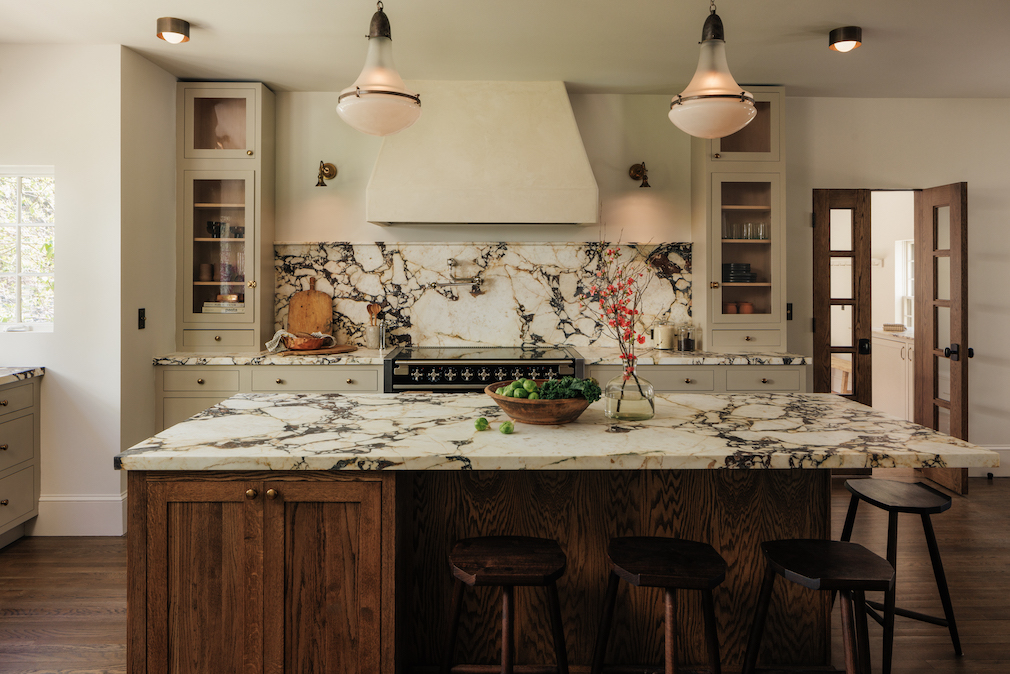 The home’s renovation honors both form and feeling. Arched passageways, hand-troweled plaster walls and three wood-burning fireplaces evoke a sense of European calm. Authentic materials — antique limestone, terracotta, aged wood — are layered with intention, celebrating the natural imperfections that lend soul and softness to a space. The result is an atmosphere that plays in quiet dialogue with light and shadow, where the rhythm of the day unfolds against a backdrop of warmth and elegance.