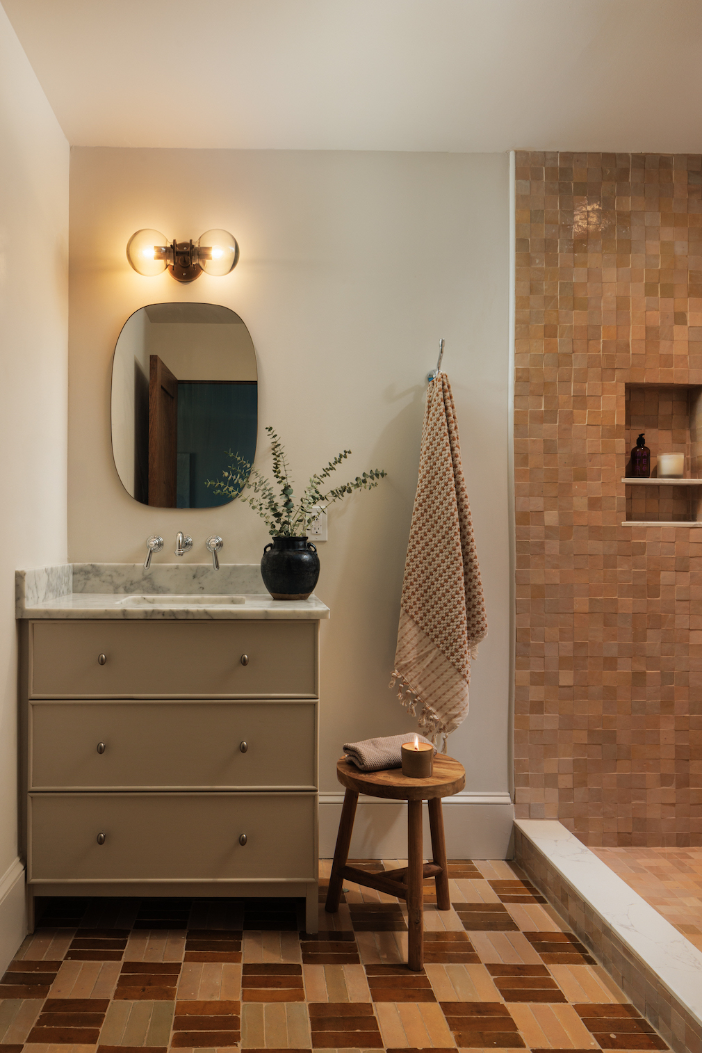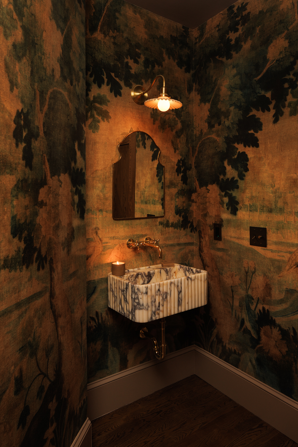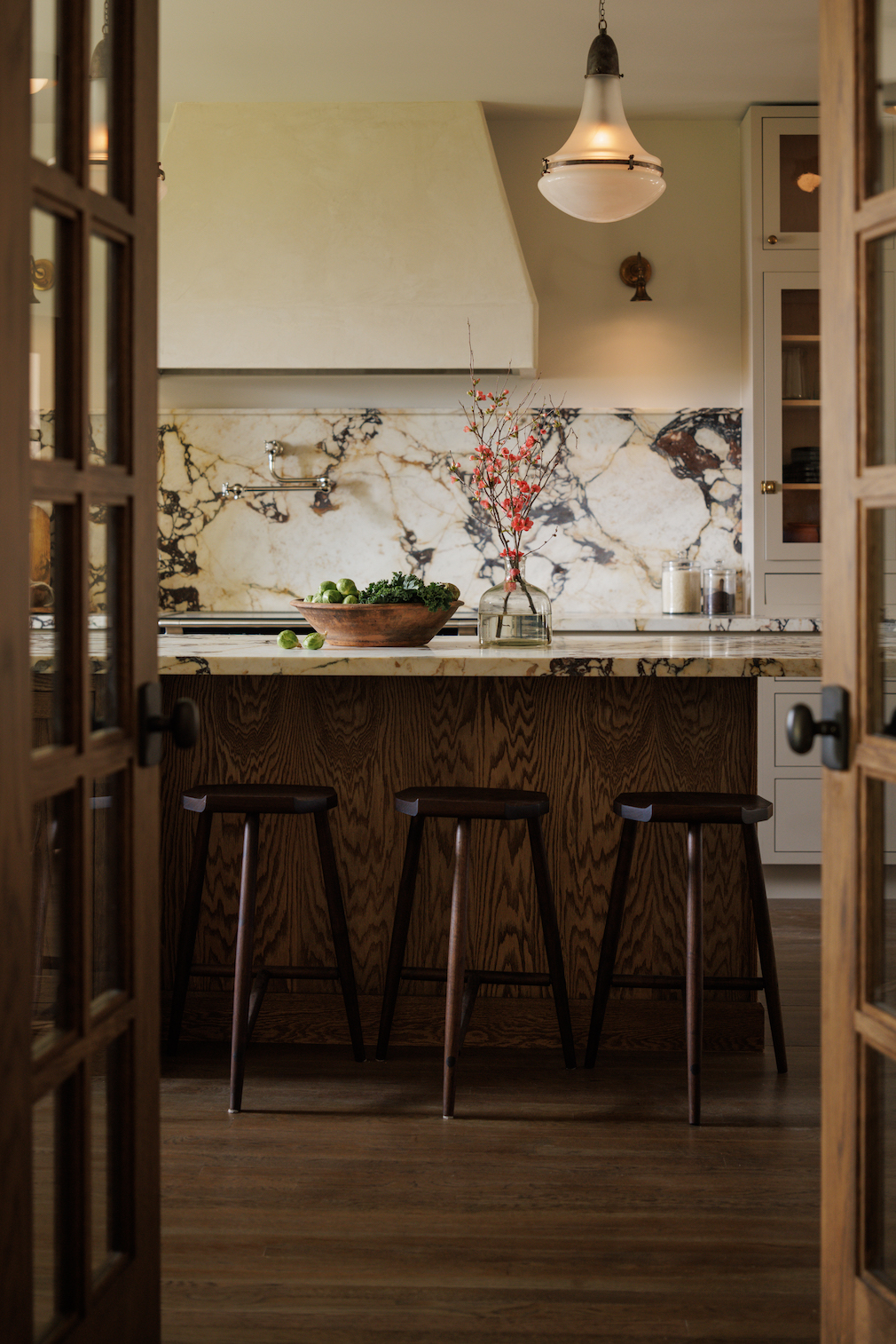 At the heart of the home, a newly renovated kitchen serves as both utility and gathering place, grounded by custom finishes. Adjacent living and dining spaces are fluid and serene, framed by artisan lighting and the gentle glow of firelight. Bathrooms throughout the home are similarly elevated — each with its own palette and tone, yet united by a devotion to touch, tone and texture.
