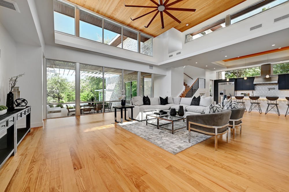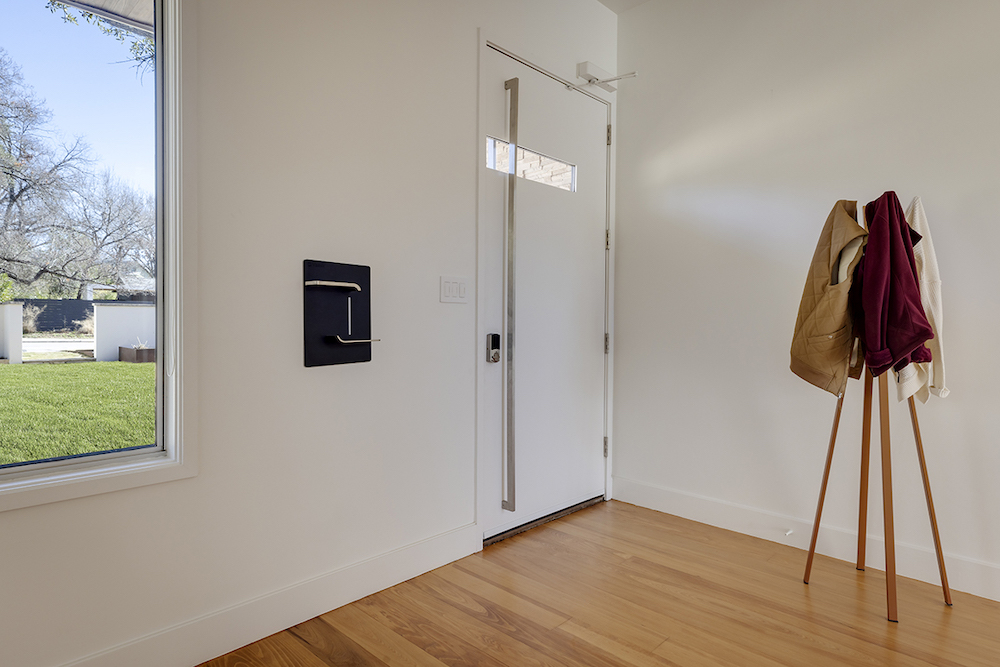 Clerestory windows are strategically placed in both common areas and bedrooms to bring in maximum natural light, particularly in the main living room and kitchen. To counter the brutal Texas summer sun, smaller south-facing windows sit high to minimize direct summer sun, while still allowing ample natural light into the room.